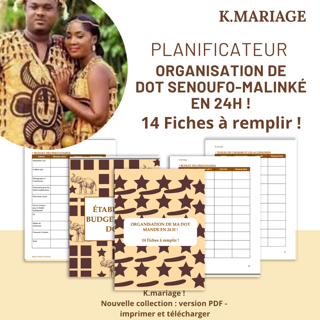 Un guide structuré et pratique avec 14 fiches prêtes à remplir, conçu pour organiser votre cérémonie de dot Sénoufo-Malinké en seulement 24 heures. Que vous soyez la future mariée, un membre du comité ou un proche impliqué dans l’organisation, ce livre vous accompagne étape par étape.